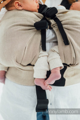 Deux en un : Unique en son genre, le LennyTwin peut se transformer en deux porte-bébés hanche LennyHip indépendants grâce à un système de détachement des boucles, permettant un portage individuel par deux porteurs ou ensemble par un seul.